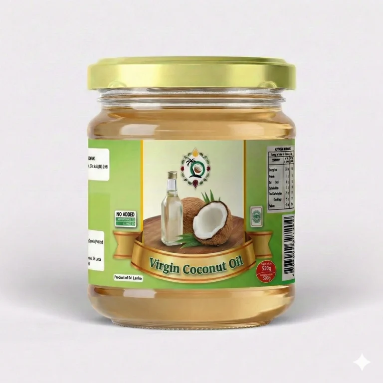 Ceylon Nature Way Exports supplies premium cold-pressed virgin coconut oil (VCO) from Sri Lanka. Our VCO is extracted from fresh coconut meat using traditional cold-pressing methods, preserving natural MCTs, lauric acid, and delicate aroma. Ideal for food manufacturing, cosmetics, and health supplement industries. Available in 200ml and 360ml glass bottles, with bulk packaging options for wholesale buyers.