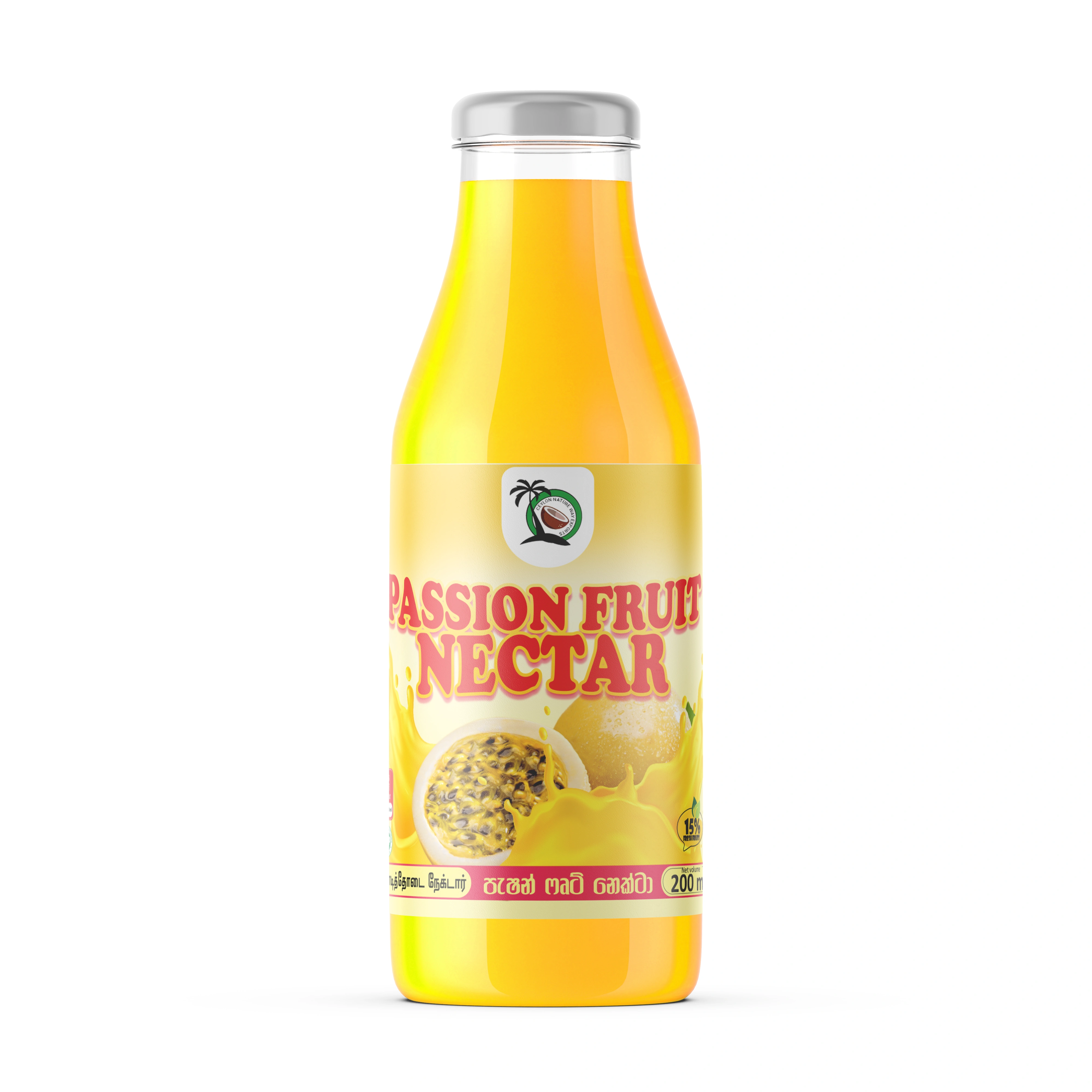 Ceylon Nature Way Exports supplies premium passion fruit nectar with intense aromatic flavor unique to Sri Lankan passion fruits. Our nectar delivers exotic tropical taste for beverage manufacturers, food processors, and culinary applications. Available in retail bottles and bulk industrial packaging.
